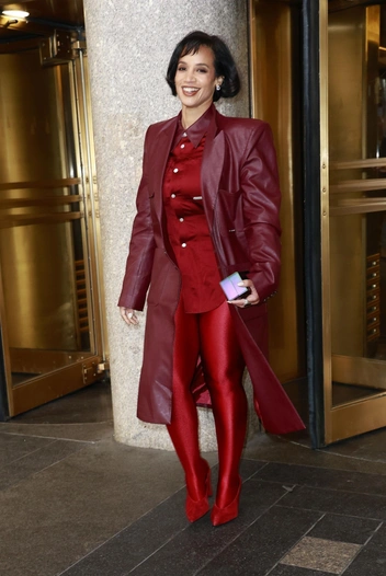 Если 2024 год уже прошел, а тренд на оттенок бургунди еще не отпускает — предлагаем вдохновляться выходами знаменитостей в бордовом. На этот раз на наших радарах образ американской актрисы Даши Поланко, которая сочетала шелковую рубашку с леггенсами и туфлями из замши. Но главный акцент образа — это кожаный тренч, который можно сочетать как с джинсами, так и с брючным костюмом.