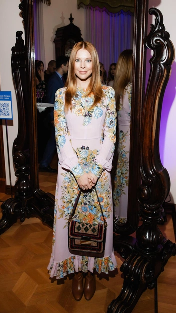Дресс-код вечера — à la russe — каждый интерпретировал по-своему: кто-то надел вещи российских брендов, а кто-то — сарафаны и кокошники. Один из стильных образов показала певица Наталья Подольская. Она примерила эффектное приталенное платье в розовом оттенке с ярким цветочным узором, дополнила его кожаными сапогами-трубами и модной сумкой.