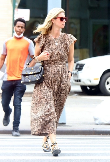 Животные принты смотрятся трендово и уместно вне зависимости от сезона, но это не мешает многим селебрити искать им достойную замену и вносить в свой повседневный гардероб нотку разнообразия. Сестра Пэрис Хилтон — известная любительница леопардовой расцветки, но даже она частенько заменяет его на более спокойные, но не менее эффектные варианты принтов. Ники примеряет нюдовое платье макси в темный горох, который смотрится очень по-летнему и звучит куда спокойнее, чем броский леопард. Звезда дополняет лук черными сумкой и обувью от Valentino, своего любимого бренда.