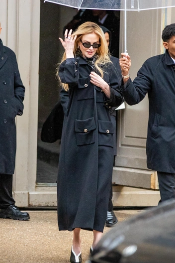 Стиль Николь — учебник по современной элегантности, а сегодня актриса показывает, каким должно быть идеальное весеннее пальто: чуть оверсайз, длина миди и глубокий черный цвет, который делает силуэт предельно графичным. Массивные накладные карманы и погоны добавляют ему утилитарный штрих, а белые туфли и узкие солнечные очки смягчают его строгость и превращают практичную вещь в базу на каждый дождливый апрельский день.