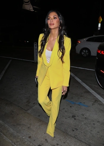 Деловой стиль — целое поле для экспериментов с составлением луков, в которых можно выглядеть женственно и привлекательно каждый день. Главная задача — правильно подобрать оттенок и фасон лука, а также уравновесить их сочетание: например, выдержанный брючный костюм визуально «облегчит» мягкий пастельный оттенок. Николь Шерзингер пробует расслабленную модель аутфита в светло-желтом монохромном исполнении, дополняя лук туфлями на каблуке и макияжем с желтым акцентом на глаза — гармоничный и лаконичный вариант выходного образа на каждый день.