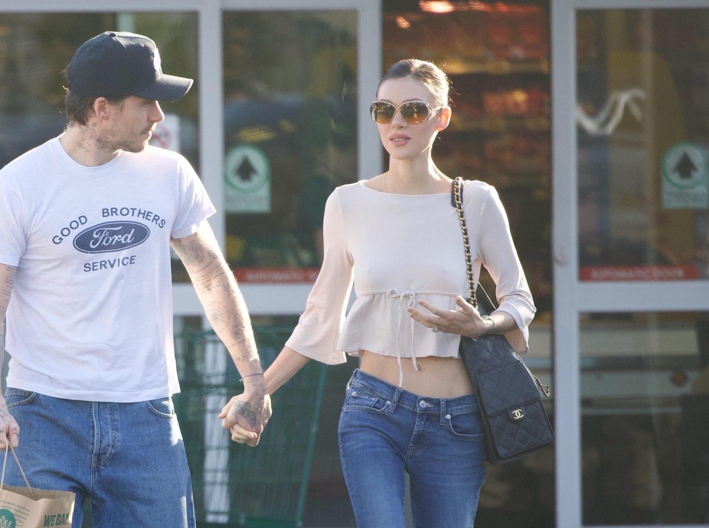 Никола Пельтц показывает, какие джинсы будут главными этой весной: низкая посадка, прямой крой и базовый голубой оттенок — почти буквальная цитата ее любимых Y2K‑силуэтов, о которых она сама не раз говорила. К джинсам она добавляет укороченный кремовый топ с кулиской по талии, балетки и классическую черную сумку на цепочке, превращая спорный тренд на заниженную посадку в очень носибельный повседневный образ.
