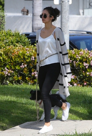 Нина продолжает череду повседневных выходов во время карантина и режима самоизоляции, подбирая стильные casual-аутфиты. Актриса предпочитает спокойную палитру оттенков, кардиган в качестве верхней одежды и облегающие джинсы на весенний манер. Свой образ Нина дополняет белыми слиппонами и солнцезащитными очками круглой формы. Уже забрали фэшн-лук в свой весенний мудборд и спешим повторить его во время следующей вылазки в магазин или на прогулку с питомцем.