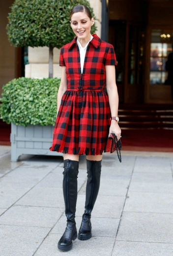 Клетка и горох — самые популярные принты: их можно носить круглый год, придумывать самые разные образы и сочетания. Правда, прошедшим летом знаменитости все-таки подустали от обоих вариантов и активно пробовали абстрактные, цветочные и другие принты на вкус и стиль. Но с наступлением осени клетка восстанавливается в правах и постепенно возвращается в звездный стритстайл — причем в очень интересных вариантах. На Неделе моды в Париже Оливия Палермо представила модный образ из короткого платье в красно-черную клетку и высоких черных сапог. Аутфит дополнил маленький клатч в тон.