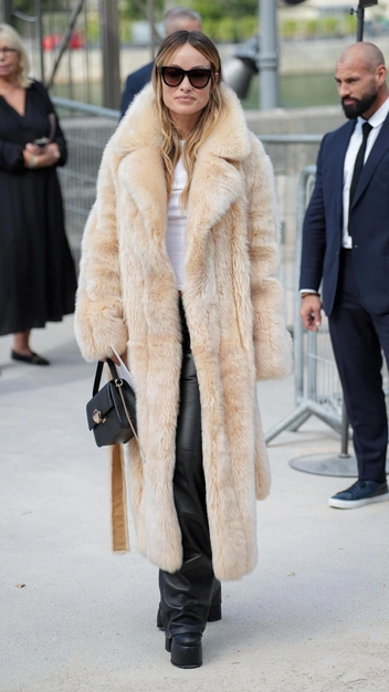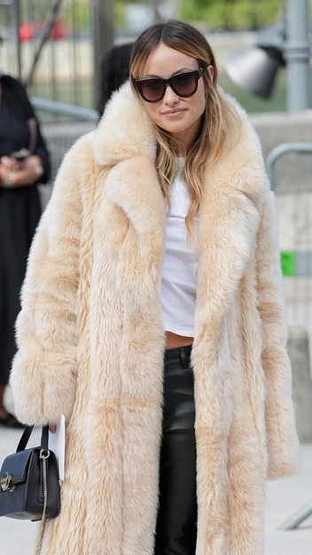 Споры вокруг актуальности шуб на осенне-зимний период не утихают, но уверяем, что в этом сезоне они точно не выйдут из моды. Оливия Уайлд показала, как дополнить простой образ меховой верхней одеждой, чтобы выглядеть безупречно и привлекать восторженные взгляды. К шубе она подобрала базовую белую футболку и кожаные брюки, которые дополнила такими же по цвету ботинками на высокой платформе. В качестве аксессуаров актриса выбрала небольшую сумку с золотой фурнитурой и темные солнечные очки.