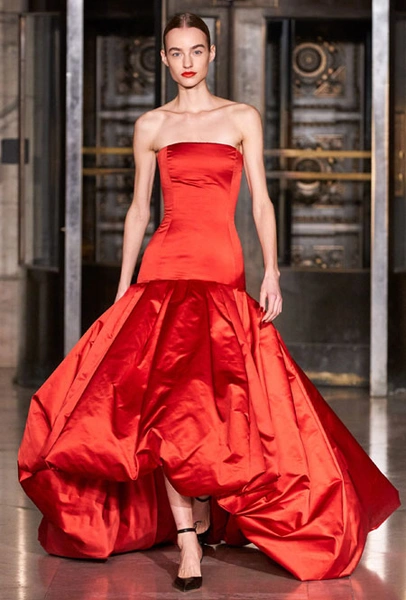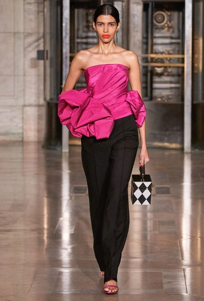 Вдохновением для новой коллекции послужил культовый черно-белого бал Трумена Капоте 1966 года, одно из самых громких светских событий XX века. Правда, палитра будущего сезона Oscar de la Renta была совсем не ахроматической: дизайнеры Лора Ким и Фернандо Гарсия решили миксовать яркие оттенки и создавать самые смелые контрастные сочетания. В коллекции представлены как роскошные вечерние платья в пол ярких оттенков, так и довольно практичные и лаконичные наряды свободных силуэтов, которые легко интегрировать в повседневных гардероб.