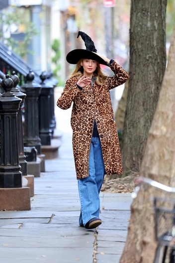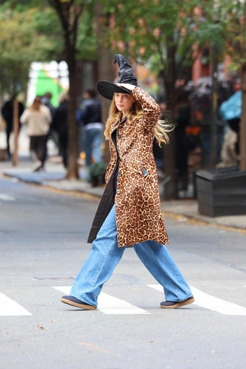 Дженнифер Лоуренс была замечена в Нью-Йорке — в полной боевой готовности к наступающему Хеллоуину. В леопардовом пальто и широких голубых джинсах актриса мастерски обыграла праздничный образ с помощью эффектной шляпы ведьмы, создав неповторимую атмосферу мистики и загадочности. Подобное стильное сочетание базового уличного образа и хеллоуинской атрибутики добавило легкой игривости в повседневный лук актрисы. Ее аутфит идеально отражает современное прочтение хеллоуинской эстетики — с долей дерзости и без излишней театральности.