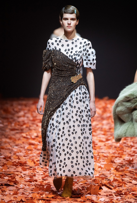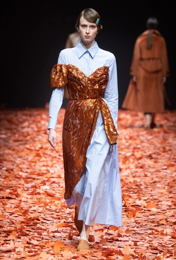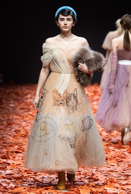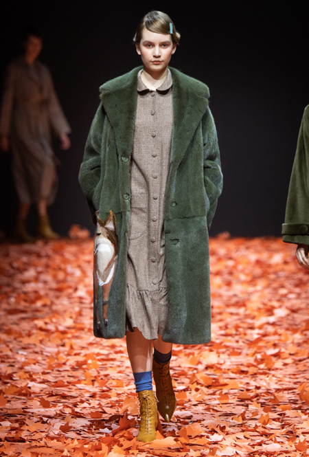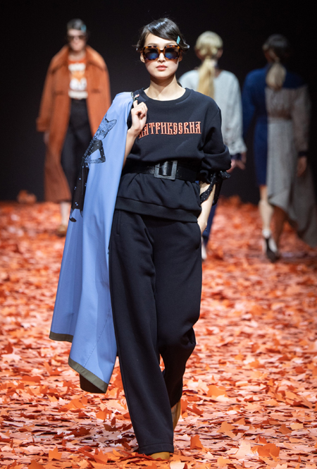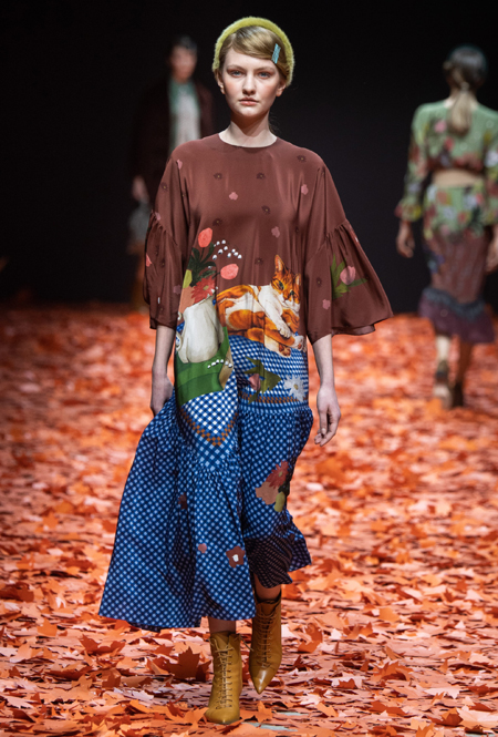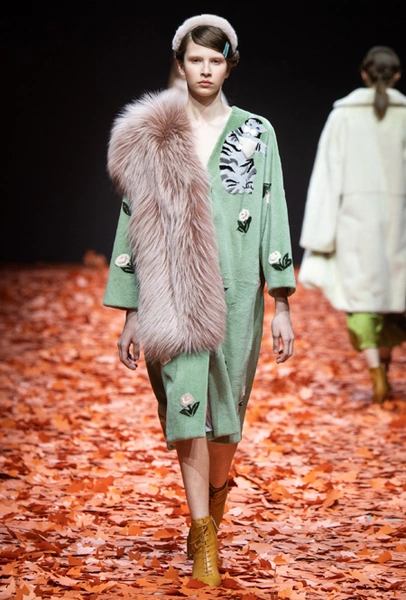 Среди всех отечественных дизайнеров Алена Ахмадуллина относится к русскому наследию бережнее всего – именно его она интегрирует в каждую коллекцию, при этом не делая что-то нарочито устаревшее и избитое. В новой осенне-зимней коллекции дизайнер рассказывает на современный лад русскую сказку «Кот и Лиса». Героиня повествования носит пышные и мягкие шубы, приталенные платья с расклешенной юбкой в духе 50-х, цветные костюмы с жакетом-кимоно и гибридные платья, будто сшитые из двух разных нарядов.
