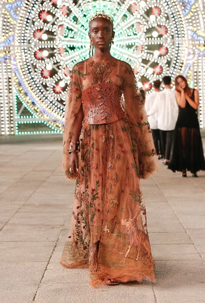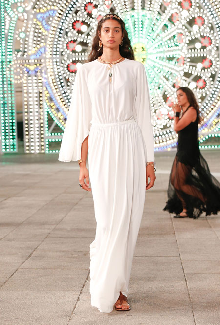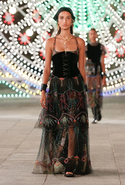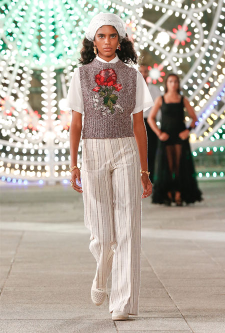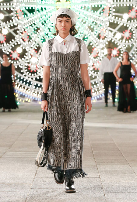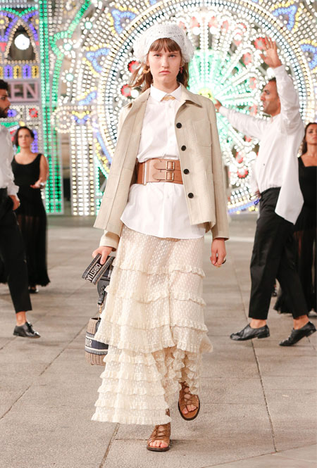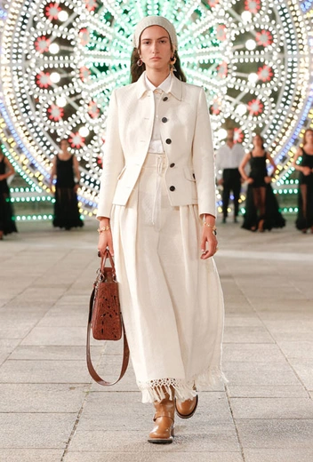 Dior постепенно возвращается к привычному fashion-расписанию – правда, с соблюдением всех мер предосторожности. Руководство Дома приняло решение транслировать новое круизное шоу онлайн и без зрителей в импровизированном зале. Показ состоялся в итальянском городе Лечче, расположенном в южной части Апулии. Это место – крайне личное для самой Марии Грации Кьюри: здесь родился и вырос ее отец. Шоу строилось вокруг местной культуры: танцоры исполняли народный танец, а музыканты исполняли композицию, созданную специально для показа на основе традиционной музыки Апулии.