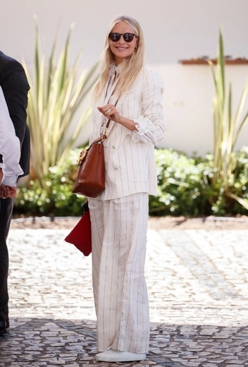 Помимо красных дорожек и светских вечеринок на Каннском кинофестивале особенное внимание фотографов привлекают стритстайл-выходы гостей мероприятия. Неудивительно, ведь для casual-гардероба на Лазурном берегу селебрити подбирают ничуть не менее интересные и трендовые луки, чем для фотоколлов и кинопоказов. Поппи Делевинь делает ставку на брючную классику и выгуливает расслабленный светлый костюм в вертикальную полоску — самую что ни на есть классику круизного стиля. Звезда дополнят наряд белыми кроссовками, кожаной коричневой сумкой и солнцезащитными очками.