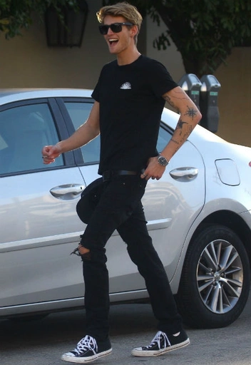 Сын звездной четы Рэнди Гербера и Синди Кроуфорд предпочитает исчерпывающие монохромные casual-образы: просто и без излишеств. К слову, он так же, как и его родная сестра Кайя, обожает конверсы и при любом удобном случае надевает именно их.