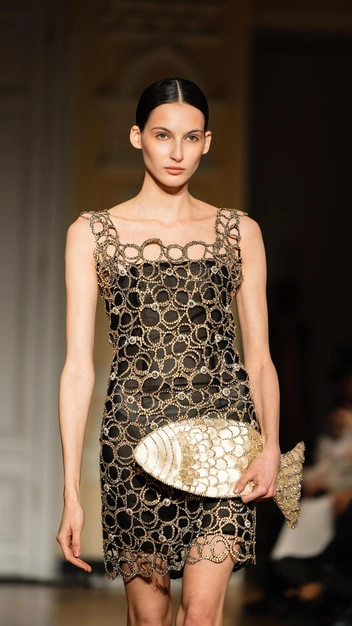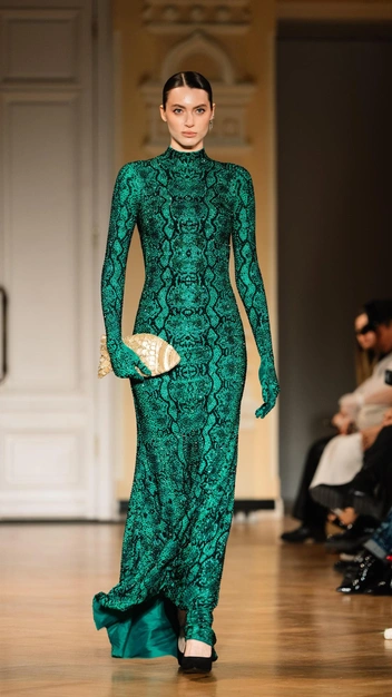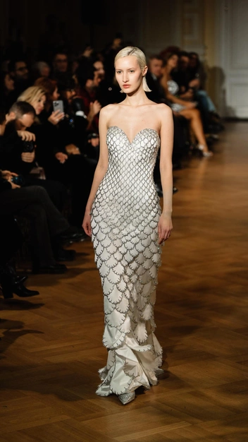 Дизайнер отразил в коллекции разные тенденции 2024 года: это полупрозрачные ткани, расшитые пайетками и кристаллами, длина макси, крупные аксессуары, открытые плечи, перчатки и вырезы. Вдохновлялся Арташес, креативный директор бренда, морской стихией, а именно — картинами Айвазовского и многообразной фауной подводного мира.