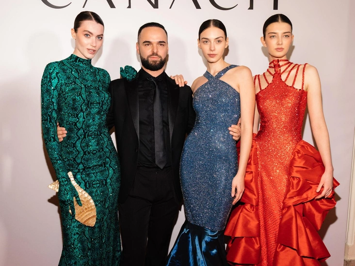 Главные российские звезды прибыли на весенне-летний показ российского бренда вечерних платьев Canach, чтобы познакомиться с актуальными трендами сезона. Классические строгие силуэты образов дополнены эпатажным декором и аксессуарами. В коллекции четко считываются сюрреалистичные мотивы в духе Сальвадора Дали. Например, «руки времени» на некоторых моделях и «всевидящее око» на огромных воротниках платьев, открывавших показ.