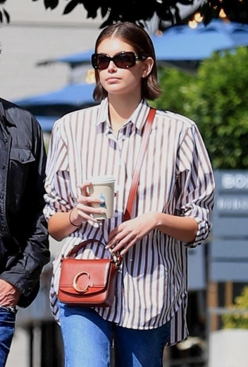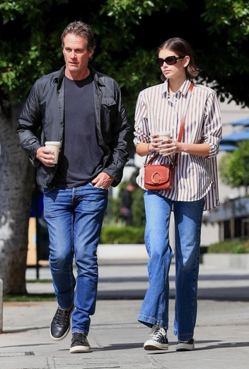 По регулярным прогулкам Кайи Гербер с отцом Рэнди мы уже успели соскучиться. Погода радует Лос-Анджелес теплом, да и график показов у Кайи теперь менее насыщенный, поэтому такие стильные выходы мы точно будем наблюдать чаще. Образ модели явно достоин того, чтобы занять почетное место в нашем стильном мудборде для весны. Благо, повторить его не составит труда: свободные джинсы-клеш Кайя сочетает с оверсайз-рубашкой в полоску, простыми кедами и удобной карамельной сумочкой кросс-боди.