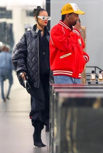 По приезде с Барбадоса Рианна воссоединилась со своим возлюбленным, рэпером Asap Rocky, и отправилась вместе с ним на шопинг в центр Нью-Йорка. Папарацци, которые всегда устраивают настоящую охоту за выходами этой знойной парочки, были тут как тут и успели сделать серию снимков с влюбленными. Для совместного шопинга Рианна и Асап Роки подобрали стильные аутфиты в урбан-стиле: исполнительница выгуляла лук в total-black со стеганой кожаной курткой оверсайз, а ее возлюбленный предпочел более яркое сочетание с ярко-красной курткой леттерман, желтой бейсболкой и белыми сникерсами.