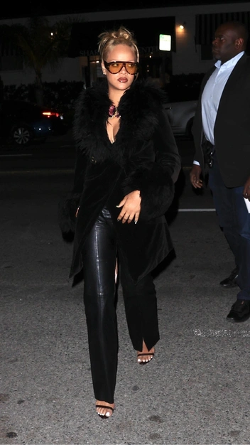 Какие очки выбрать на весну и лето 2024, чтобы покорить всех? У Рианны есть модное решение — вам нужны широкие солнцезащитные очки с оранжевые стеклами, что стали главным аксессуарным трендом этого теплого сезона. Певица дополнила ими эффектный черный тотал-лук, что состоит из дубленки с меховой отделкой, кожаных брюк, топа и босоножек с тонкими ремешками. Еще одна деталь, которая не сразу бросается в глаза, — колье с крупными камнями.