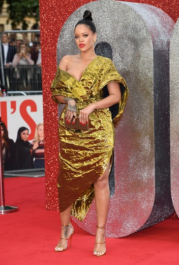 Еще одной звездной гостьей лондонской премьеры «8 подруг Оушена» (Ocean's 8) стала Рианна — певица, дизайнер и икона стиля с недавних пор покоряет еще и актерский Олимп. На красной дорожке РиРи появилась в золотистом наряде от реанимированного бренда Poiret. Несмотря на неоднозначность платья, Рианне оно очень идет, а смелости барбадосской поп-диве, как известно, не занимать.