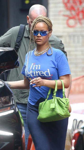 Рианна, мама двоих детей, ломает стереотипы и показывает, что ярко и стильно можно выглядеть в любом статусе. Певица решила поэкспериментировать с цветовыми сочетаниями и примерила необычное спортивное платье, которое имитирует футболку, надетую поверх юбки. К образу звезда подобрала акцентные аксессуары: красные кроссовки, плетеную сумку ярко-салатового оттенка и очки в духе нулевых.