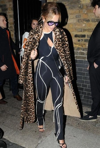 Чисто классические фэшн-решения никогда не были ведущими в арсенале Риты Оры: знаменитость обожает миксовать разные стили в одном образе и добиваться эффектного выхода в рамках привычного повседневного стритстайла. Последний лук, который выгуляла Ора, стал настоящим хитом звездной хроники и подарил нам еще одну идею, как выглядеть ярко, но не броско. Рита примерила комбинацию со слитным облегающим костюмом в темном оттенке с отделкой в абстрактном стиле и леопардовым пальто. Лук дополнили открытые туфли, солнцезащитные очки и драгоценные украшения.