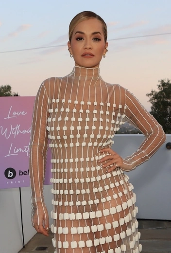 Похоже, недавний выход Меган Фокс в боди из прозрачной сетки с кристаллами вдохновил многих селебрити на большую откровенность в личном стиле. Рита Ора считает, что транспарентное платье — идеальный спутник для по-настоящему эффектного вечернего выхода в свет. Для вечеринки Vas J Morgan’s PRIDE 2021 Party красотка предпочла как раз такой образ и стала благодаря ему главной героиней вечера. Рита примерила полупрозрачное платье макси в вертикальную полоску с декоративной отделкой в круизном стиле в комбинации с нюдовым боди и белыми туфлями на каблуке. Исполнительница завершила образ ярким макияжем в розовых тонах и минималистичными украшениями.