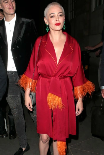 С корабля на бал: на вечеринке LOVE Magazine Роуз появилась в прямо-таки необычном аутфите — платье-халате макового цвета с декоративными оранжевыми перьями на поясе и рукавах, а дополнила верх звезда «Зачарованных» массивными серебряными оксфордами. Хорошо это все или плохо — решать вам: если актриса хотела эксцентричного выхода, у нее он точно получился.