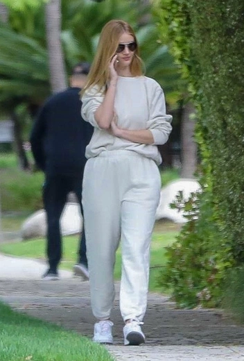 Американской супермодели удается выглядеть на все сто как на подиуме, так и в обычной жизни, так что Джейсон Стэтхэм может считать себя настоящим счастливчиком. Для прогулки с сыном и любимым супругом Роузи выбирает расслабленный, но стильный фэшн-образ: звезда выгуливает домашний тотал-лук в кремовом оттенке, белые кеды и черные солнцезащитные очки.