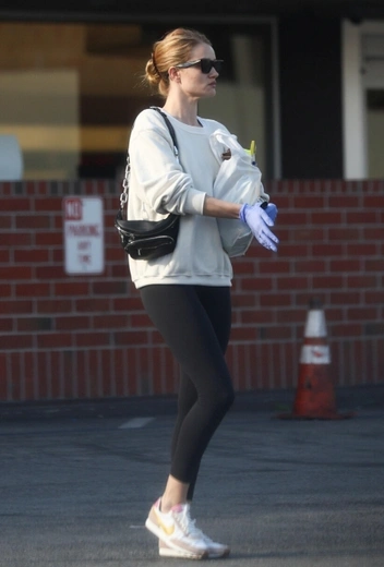 В период пандемии Роузи крайне редко выбирается за пределы дома, но если и нарушает режим карантина, то всегда вооружается маской, защитными перчатками и очками. Модные фэшн-луки подождут: для большинства селебрити сейчас в приоритете — собственное здоровье и здоровье близких. Правда, у супермодели получается выглядеть стильно даже в обычных черных леггинсах, джемпере кремового оттенка и кроссовках в тон верха.