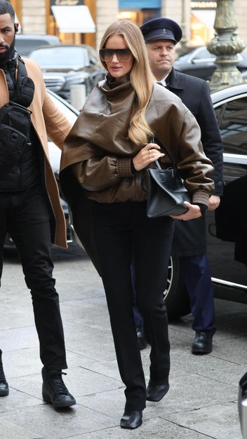 Все больше звезд приезжает прямо сейчас в Париж, чтобы посетить кутюрные показы и насладиться творчеством современных дизайнеров. Однако еще одна причина для многих из них — возможность продемонстрировать свой безупречный стиль, поддержав статус фэшн-иконы. Так, Роузи Хантингтон-Уайтли была замечена в ультрамодном аутфите, для которого она выбрала узкие черные брюки и акцентную кожаную крутку с кейпом. Аксессуары — главные тренды сезона: обувь с квадратным мысом и сумка-клатч прямоугольной формы.