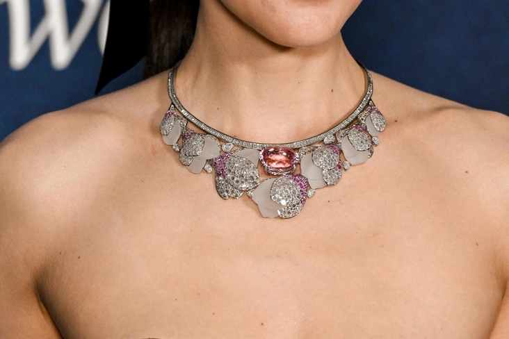 В Метрополитан музей зашли Майки Мэдисон в ожерелье из бесцветных и желтых бриллиантов, Аня Тейлор-Джой в украшениях из россыпи камней, амбассадор бренда Роузи Хантингтон-Уайтли в модном платье с кейпом и украшениях с перламутром, а также другие друзья Дома.