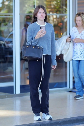 Например, сумку Birkin можно заменить любой другой вместительной, а трикотажные спортивные брюки и свитер — вообще маст-хэв для повседневных выходов. Только вот кроссовки лучше оставить без изменений — обувь удобнее, чем On, придумать трудно.