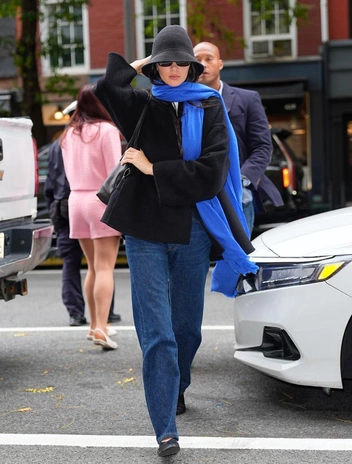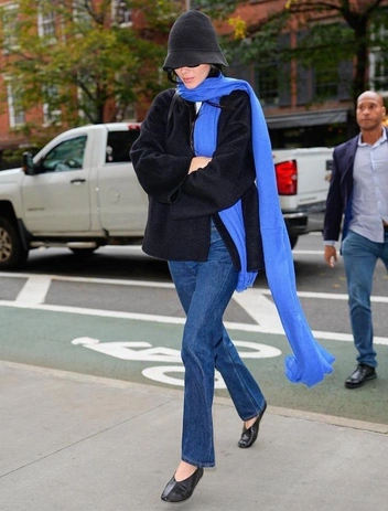 Кендалл Дженнер как всегда не отстает от трендов. Для последнего выхода модель выбрала самый стильный аксессуар этого сезона — шляпу-клош родом из 1920-х. Кендалл показывает, что даже такой аутеничный головной убор можно легко интегрировать в повседневный гардероб, достаточно лишь надеть любимые синие джинсы, черное пальто и добавить еще один современный акецнт — ярко-голубой шарф, который уравновесит шляпу, и ваш образ не будет выглядеть излишне «архивным».