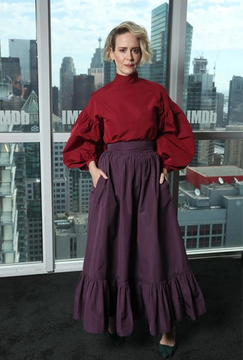 Стиль актрисы Сары Полсон последнее время заслуживает особого внимания. Кажется, американская актриса – одна из немногих звезд, кому идет абсолютно все. И на кинофестивале в Торонто у нее получилось это еще раз нам доказать. Так, идеальный образ в богемном стиле получился у нее на презентации новой ленты «Щегол». Девушка выбрала пышную винную блузу из тафты с рукавами-буфами и сливовую юбку с воланом на подоле из коллекции Valentino Resort 2020.