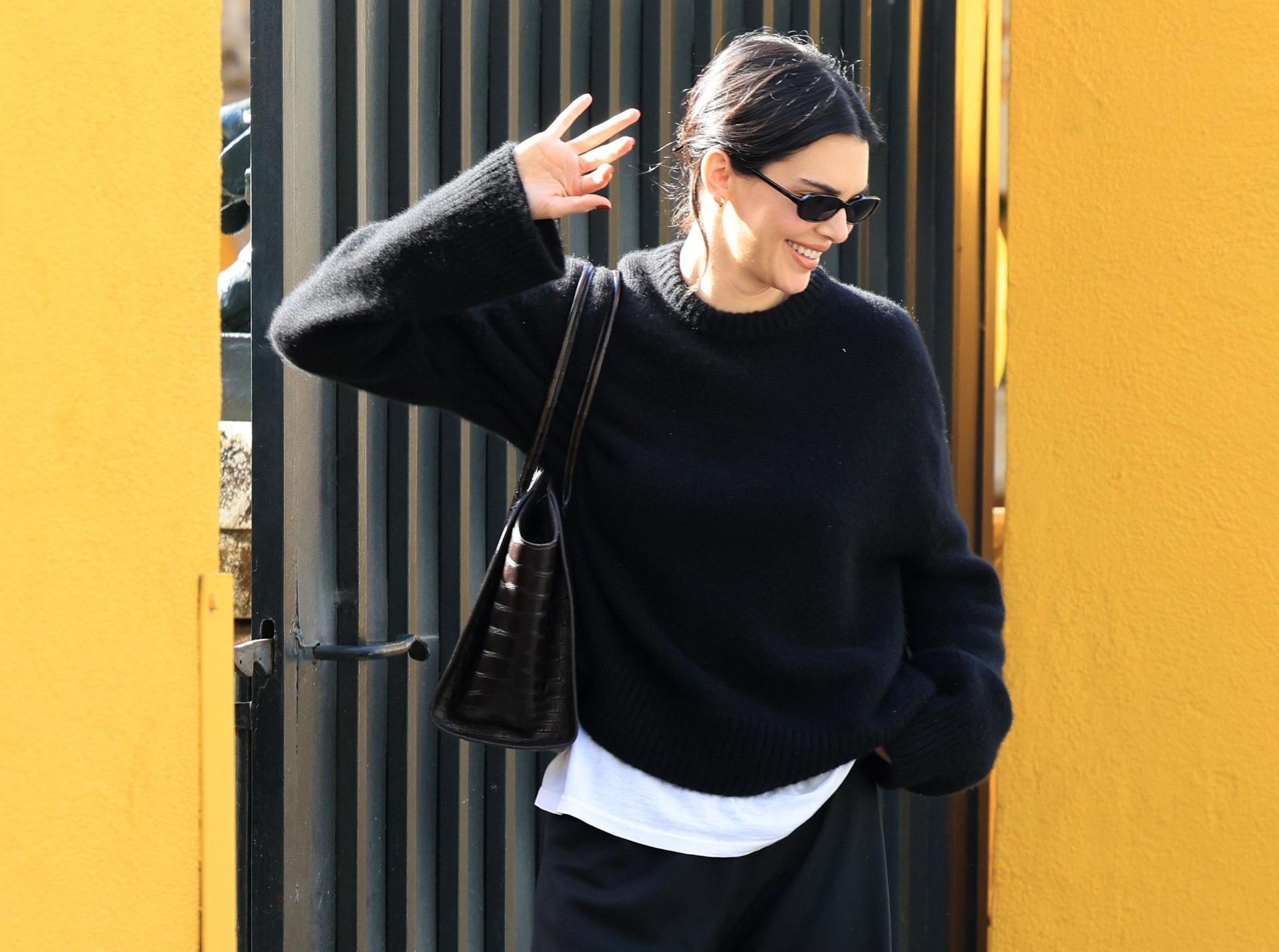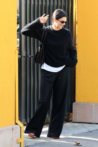 Кендалл снова показывает мастер‑класс по «тихой роскоши» на каждый день: черный свитер поверх белой футболки, широкие черные брюки и лаконичная сумка составляют идеальный городской базовый набор — без единого логотипа. Единственный цветовой акцент — терракотовые балетки, которые «случайно выглядывают» и делают этот спокойный минималистичный образ чуть более живым, но все равно предельно ненавязчивым, как и ее улыбка, которая не сходила с лица модели всю прогулку.