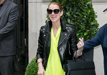 48-летняя канадская певица Селин Дион проводит время в Париже. И, поскольку ни один выход из апартаментов, где она остановилась, не проходит незамеченным для толп поклонников, звезда всегда при параде. Для этого выхода Селин выбрала крепдешиновое платье с горловиной-шарфом неоново-желтого цвета из 100%-го шелка. Платье модного бренда Balenciaga доступно сейчас только по предзаказу за $2,250. Селин не стала экспериментировать и подобрала в пару к платью рекомендованные дизайнерами черные высокие сапоги и кожаную «байкерскую» куртку того же бренда.