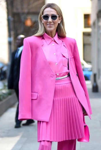 Тотальный розовый – слишком инфантильно? Как бы не так! И пример Селин Дион заразителен. Ее выходы уже давно стали доказательством, что в любом возрасте можно носить любые вещи, в том числе и яркий розовый оттенок. Причем стилисты певицы создают яркий образ в самой необычной интерпретации: к рубашке, жакету и свободным брюкам они добавляют мини-юбку в складку.