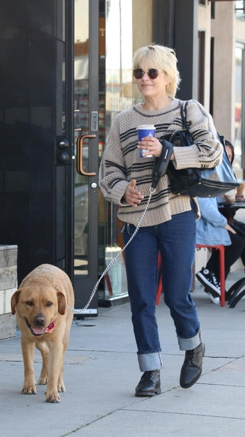 Сэльма Блэр отправилась на прогулку с собакой в стильном образе. Актриса надела свободный вязаный свитер в полоску и прямые джинсы, которые она модно подкатала. Дополнила знаменитость выход ботинками на шнуровке, солнцезащитными очками и эффектной большой сумкой, которая сейчас в тренде.