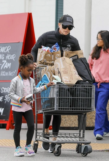 Главным аксессуаром этого месяца точно станут не брендовые сумки, а продуктовые тележки. На традиционную закупку в супермаркет отправилась и Шарлиз Терон вместе с детьми и выбрала удобную и практичную одежду: стеганую куртку, кроссовки, лосины и кепку.