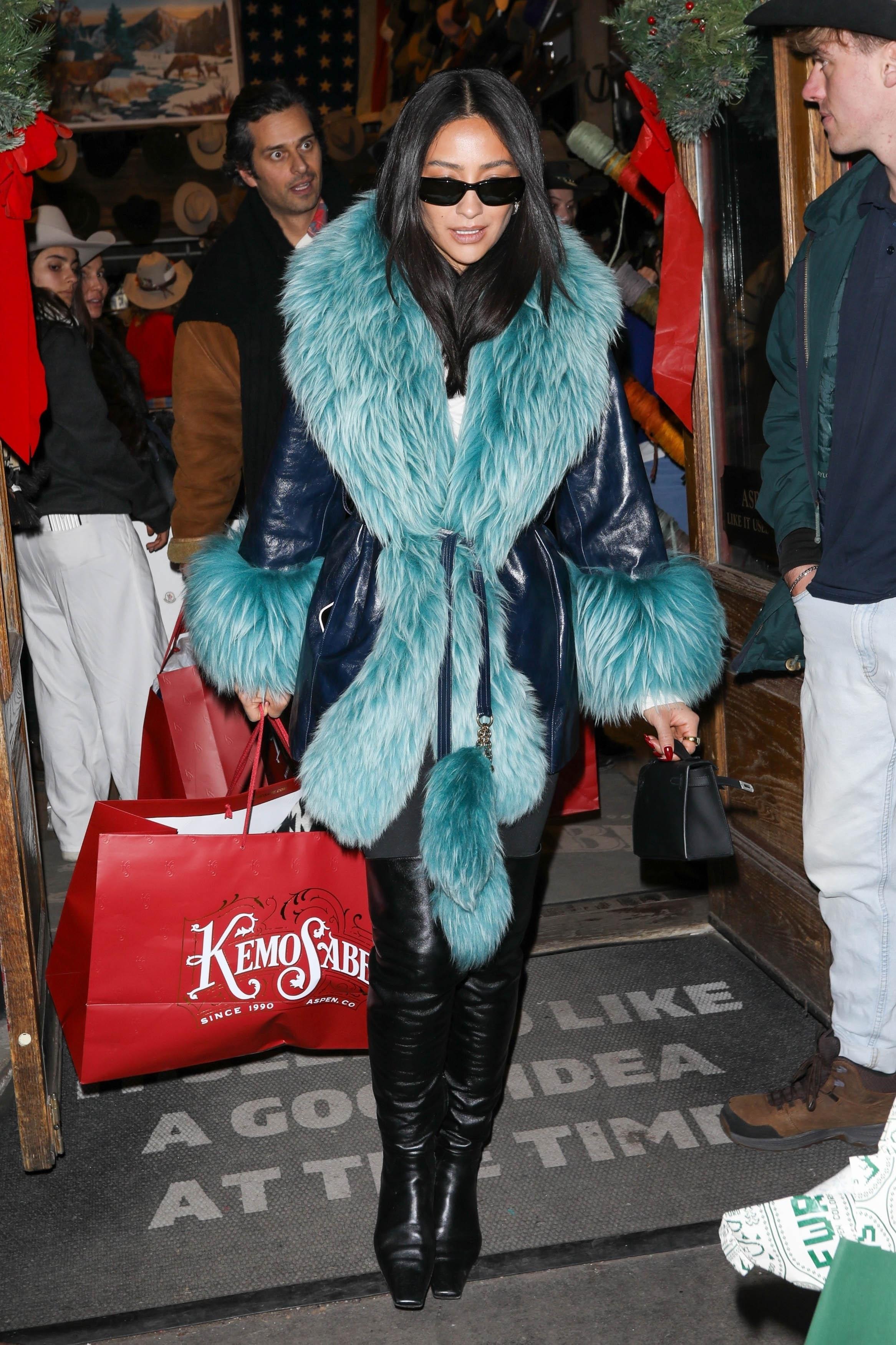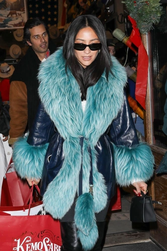 Шей Митчелл выходит из магазина в Аспене так, будто примерила сразу весь зимний виш‑лист из соцсетей: лаковая темно‑синяя дубленка с огромным бирюзовым мехом по воротнику и рукавам делает ее главной снежной дивой курорта. Вниз она добавляет высокие кожаные ботфорты, чтобы не «раствориться» на фоне пушистого верха и сохранить четкий силуэт. Черная мини‑сумка Kelly собирает аутфит и добавляет ему статуса, так что это уже не просто теплый образ для прогулки, а полноценный боевой шопинг‑комплект — «зайти за свитером и случайно выйти иконой apres‑ski».
