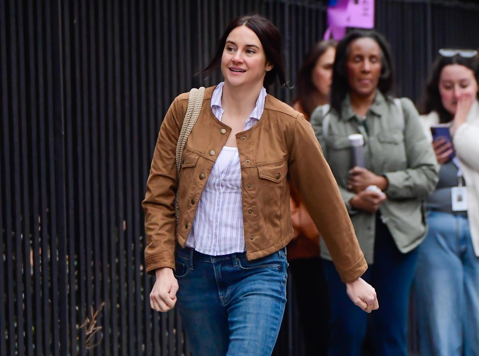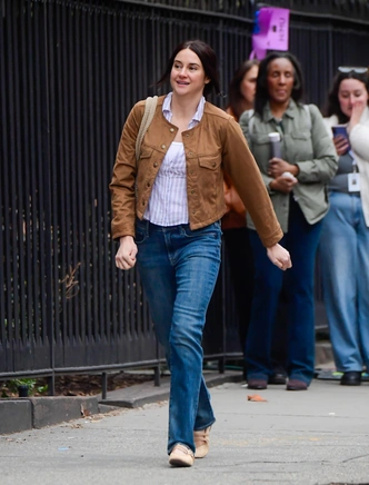 В образе Шейлин нет ни одной кричащей детали, но именно в этом вся фишка: короткая куртка из карамельной замши поверх расслабленной рубашки в тонкую полоску и белого топа создает идеальный кэжуал в духе нулевых, который сегодня снова считают эталоном базового стиля. Прямые джинсы синего оттенка, бежевые балетки и плетеная сумка‑шопер делают лук максимально живым — таким, в котором можно отправиться и по делам в город, и случайно попасть в объектив уличного фотографа, не меняя ни одной детали.