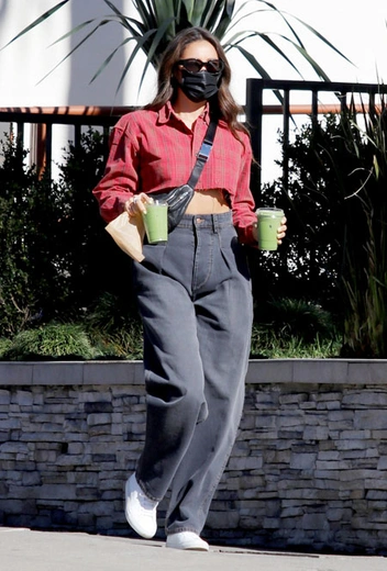 Актриса Шей Митчелл крайне редко появляется на публике, поэтому во время своих нечастых появлений старается выглядеть на острие моды. Недавно фотографы засняли 33-летнюю звезду во время прогулки. Девушка отправилась в кафе и заодно показала, как носить один из ключевых трендов сезона – укороченную рубашку. К варианту с клетчатым принтом она добавила свободные серые джинсы в стиле 90-х и завершила образ белыми кроссовками и поясной сумкой.