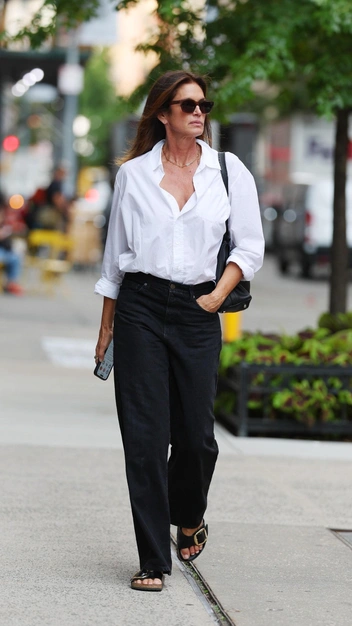 Как выглядеть стильно в базовых предметах гардероба? Предлагаем присмотреться к новому образу супермодели, который всегда будет в тренде. Сидни Кроуфорд выбрала вневременное сочетание и надела белоснежную рубашку мужского кроя в комбинации с широкими черными джинсами. Эффектный аутфит знаменитость дополнила лаконичными сандалиями, кожаной сумкой, очками и украшениями.