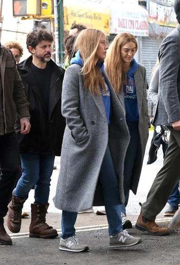 Новый повседневный образ Скарлетт строится на сочетании классики и спорт-шика: строгое серое пальто и прямые голубые джинсы она дополняет ярко‑голубым худи, выглядывающим из‑под воротника, словно подиумный акцент. Финальный штрих — кроссовки New Balance, которые делают лук максимально комфортным, но при этом не лишают его голливудского шика: спорт здесь работает не против элегантности, а наоборот, на ее точечное усиление.