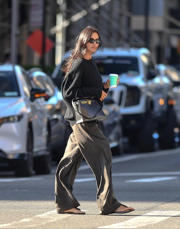 Почти все лето мы не видели Ирину Шейк в сводках папарацци, но в начале учебного года модель сделала исключение. Она отправилась в школу за дочерью, подобрав стильный и расслабленный лук в темных тонах. Его основа — свободные брюки изо льна и плотный кашемировый свитер в черном цвете. А в завершении — сумка Hermes Kelly, коих в гардеробе Шейк больше чем у любой звезды.
