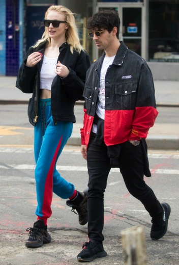 Солист группы DNCE и звезда «Игры престолов» — частые гости стритстайл-хроники. В этот раз влюбленные появились в расслабленных полуспортивных образах и очень сочетались друг с другом. Софи и Джо вместе с 2016-го, а в позапрошлом году Джо сделал актрисе предложение (читаем: Софи теперь в одном семейном клане вместе с Приянкой Чопрой, ведь Джо и Ник приходятся друг другу братьями).
