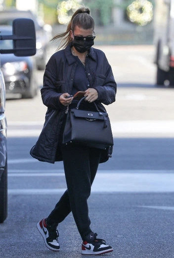 Частые перемещения по городу изо дня в день заставляют не только лучше продумывать свой ежедневный casual, но и искать новые пути, как сделать его одновременно практичнее и стильнее. София Ричи уже давно нашла для себя идеальный вариант аутфита для ритмичных будней в мегаполисе: девушка миксует спортивные и классические элементы гардероба, делая ставку на не сдающий трендовых позиций total-black. Знаменитость примеряет блузу в сочетании со спортивными штанами, легкой курткой и кроссовками Nike Jordan, дополняя лук черной сумкой и солнцезащитными очками.