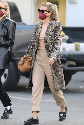 В Лос-Анджелесе климат намного мягче, чем у нас, и звезды уже давно носят легкие и расслабленные наряды для теплой погоды. Рано или поздно такая температура будет и у нас, а значит можно с уверенностью брать модные приемы знаменитостей на заметку. Подсмотреть идеи стоит и у Софии Ричи. Девушка примерила бежевый ансамбль из топа и классических брюк и дополнила его акцентным пальто с мелким леопардовым принтом, классическими лоферами и сумкой из мягкой кожи.