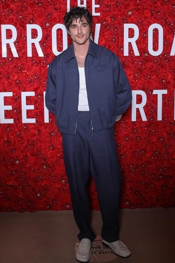 Так, Джейкоб выбрал костюм из синей ткани с брюками и бомбером — хитом 2025 года. Аутфит дополнили лоферы из кожи с квадратным мысом в ретро-стиле, а также майка-«алкоголичка».