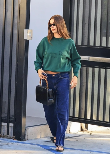 Хейли Бибер заметили на шопинге в Лос-Анджелесе, и даже для такого повседневного выхода модель выбрала интересный образ. Она сочетает любимые синие джинсы с изумрудной толстовкой. Казалось бы, обыкновенный базовый лук, но Хейли грамотно обыграла его трендовыми вьетнамками, которые придали образу еще больше непринужденности, а за акцент отвечала архивная сумка Gucci с фирменной бамбуковой ручкой. Такой стилистический прием сразу превратил образ Хейли из спортивного в спорт-шик.