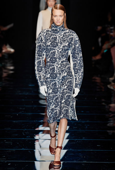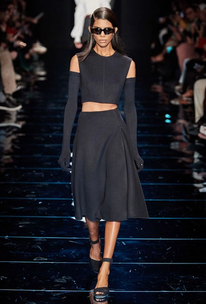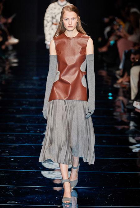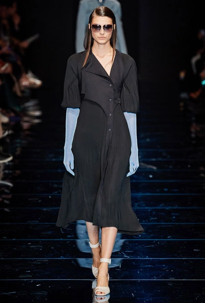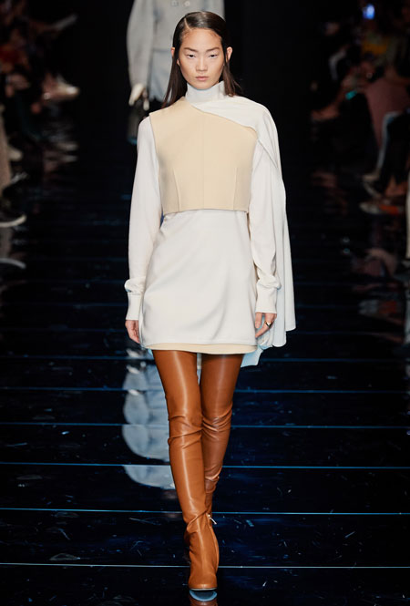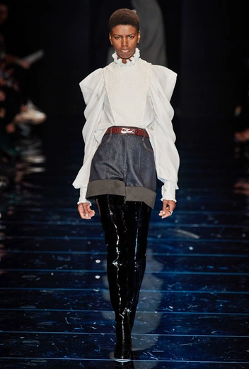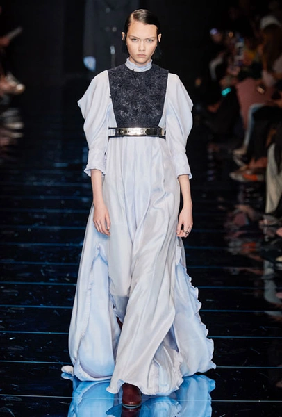 На подиуме центральное место занимала верхняя одежда – вечный символ бренда. Накидки, пальто, жакеты и дождевики с рядами необычных пуговиц имели трендовые детали: преувеличенные плечи, отстегивающиеся воротники и декоративные элементы. Жакеты с деконструкцией удачно дополнялись короткими юбками или слегка расклешенными брюками с высокой талией. В цветовой палитре нового сезона сочетались нейтральные цвета, такие как верблюжий и хаки, и более глубокие оттенки – темно-синий, серый меланжевый. Идеальным дополнением к такой глубокой гамме стали белый, розовые и голубые тона.