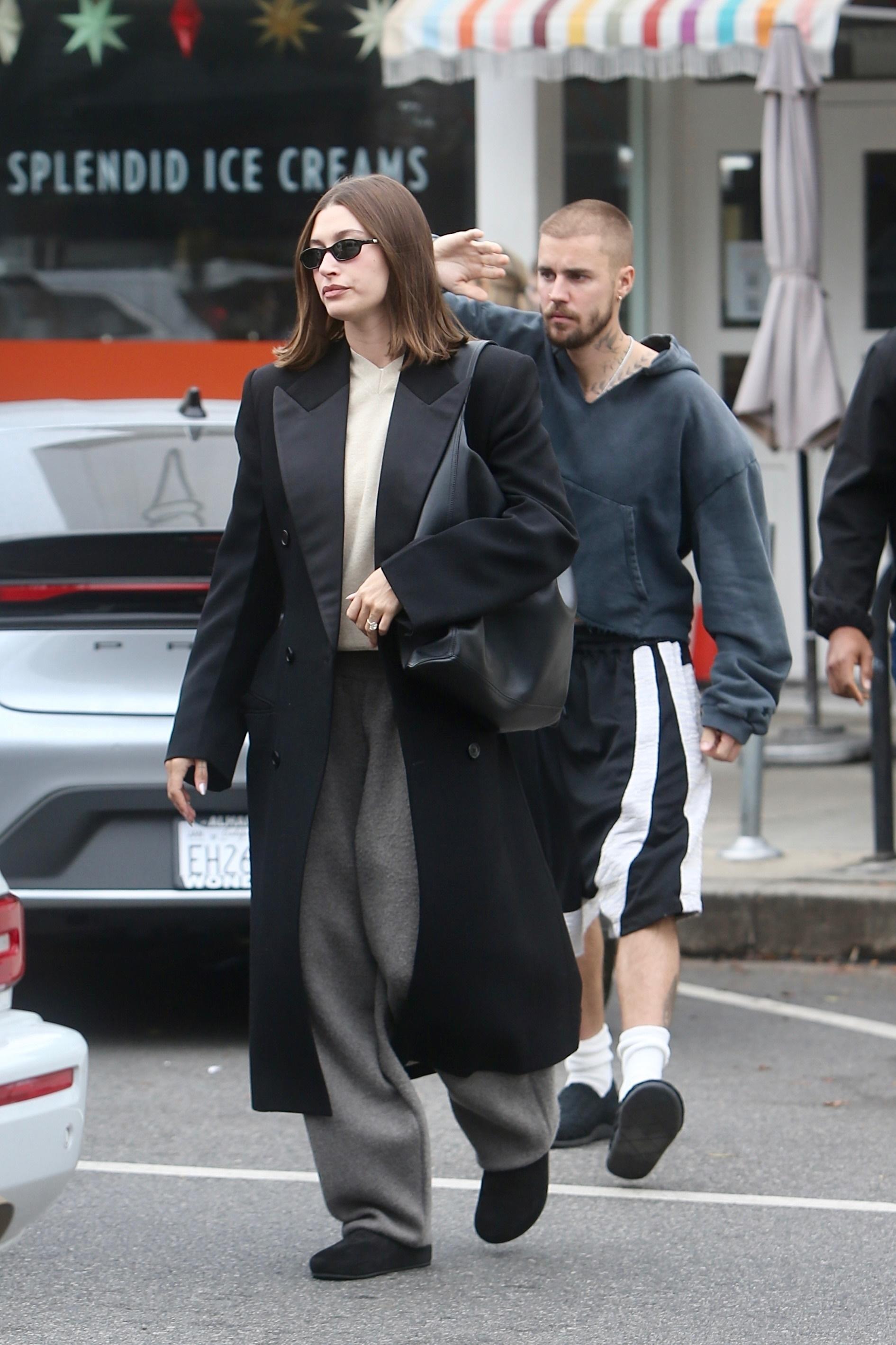 Еще один гениальный стайлтрик от Хейли Бибер: чтобы оверсайз работал на вас, а не «съедал» фигуру, оставляйте хотя бы один элемент более аккуратным и собранным. В ее случае — это длинное структурированное пальто мужского кроя поверх светлого свитера и мягких серых брюк: силуэт получается расслабленным, но плечи и линия лацканов задают четкий каркас. Макси-сумка и лаконичная обувь поддерживают монохром, так что оверсайз выглядит не мешковато, а дорого и очень продуманно.